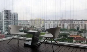 Invisible Grills is the system of installation of Stainless Steel Cables to cover windows, balconies or open areas of high rise buildings fully compliant with fire safety and evacuation norms.